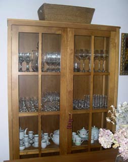 Vitrina, con cristales en toda la puerta y baldas interiores, laterales lisos, sin cornisa.